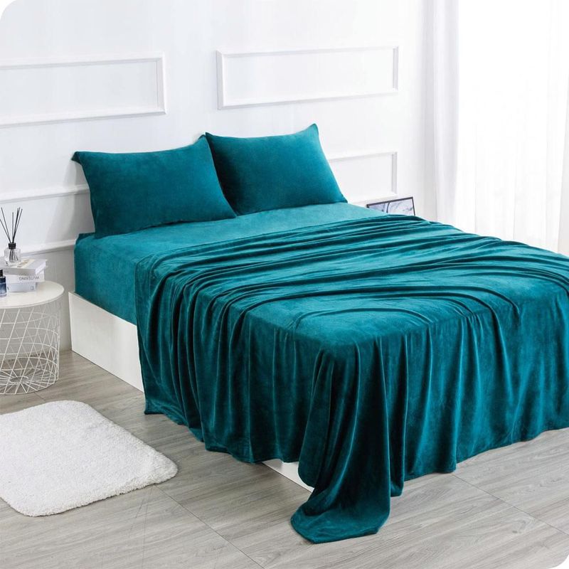 Juego de Sábanas Polar Individual Verde Petróleo Térmicas, Suaves y Ligeras Kyuden Home