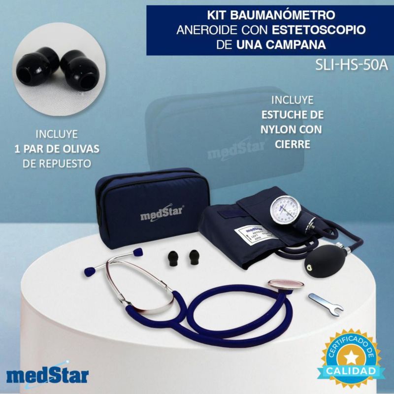 Salud y Equipamiento MédicoEquipo MédicoInstrumental MédicoKit Baumanómetro Aneroide Con Estetoscopio De Una Campana Medstar Color Azul