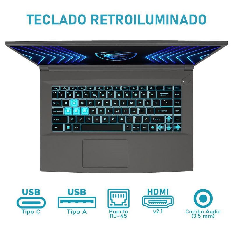CómputoPortátilesGamingLaptop gamer msi thin a15 rtx 3050 ryzen 5 7535hs 16gb 512gb