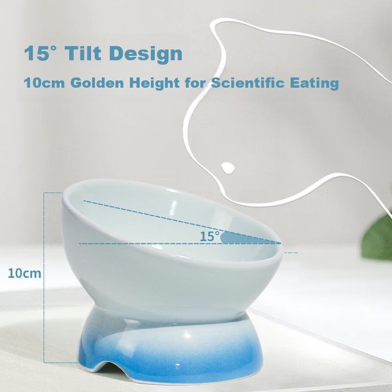 LeYouPai Comedero Cerámico Antiderrames para Gatos y Perros, 200 g, Azul Degradado