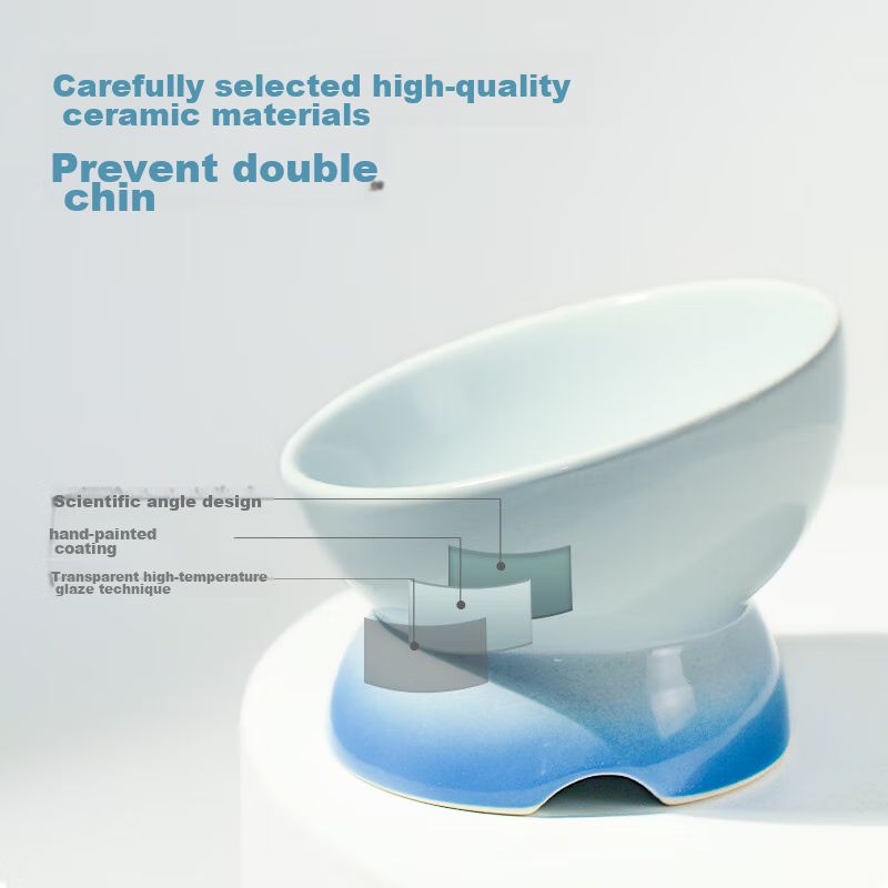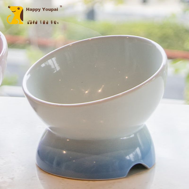 MascotasPerrosComederos y BebederosLeYouPai Comedero Cerámico Antiderrames para Gatos y Perros, 200 g, Azul Degradado