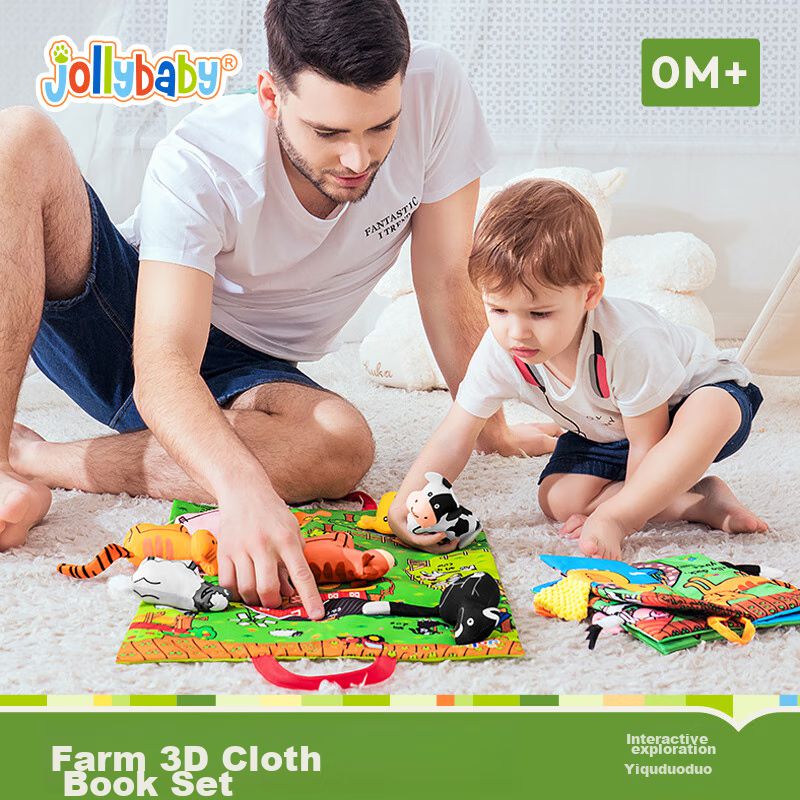 Libro de Tela Táctil 3D JOLLYBABY de algodón para bebés 0-12 meses