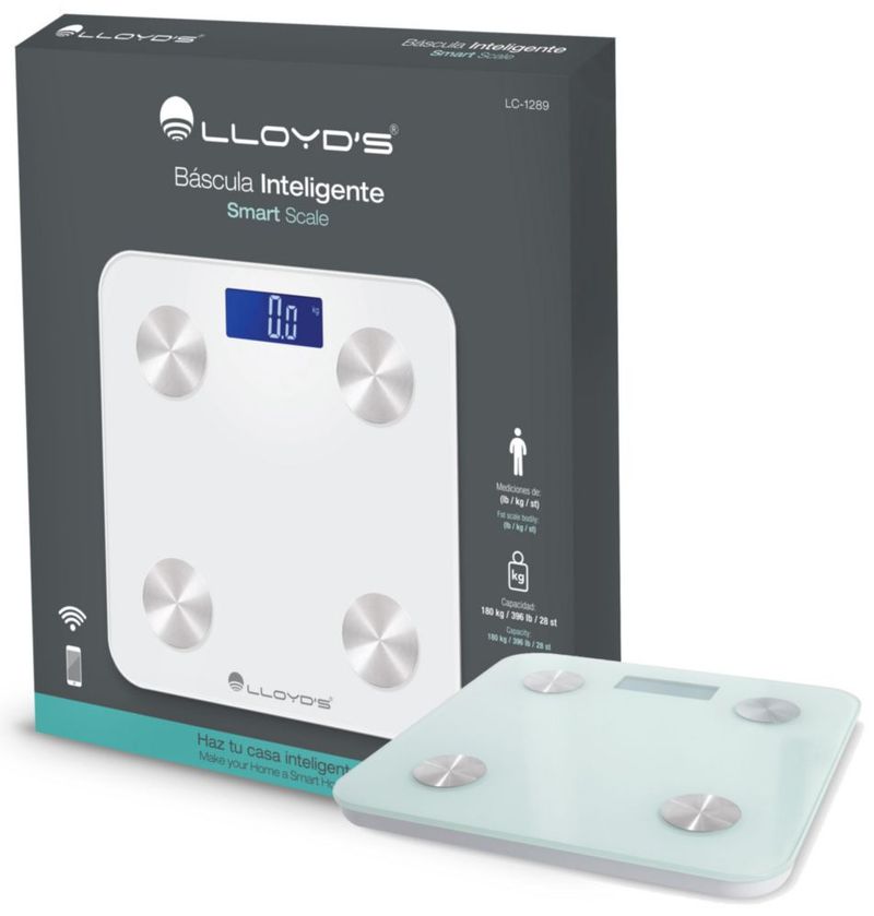 Salud y Equipamiento MédicoEquipo MédicoBásculasLloyd's Báscula Inteligente pantalla LCD y plataforma de vidrio templado