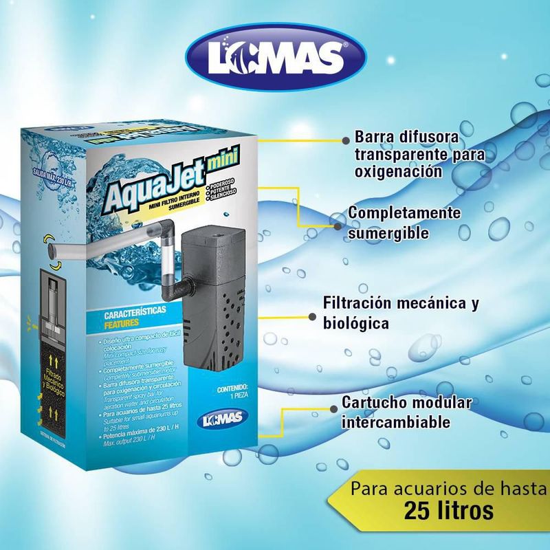 MascotasPecesAccesoriosLomas Aquajet Mini Filtro Interno para Peceras con Capacidad de 25 Litros