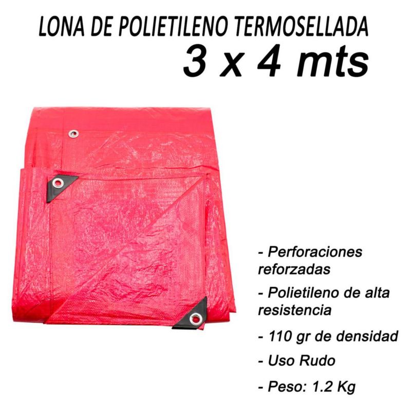 Lona De Polietileno Uso Rudo Termosellada Roja 110 Gr 3x4 M