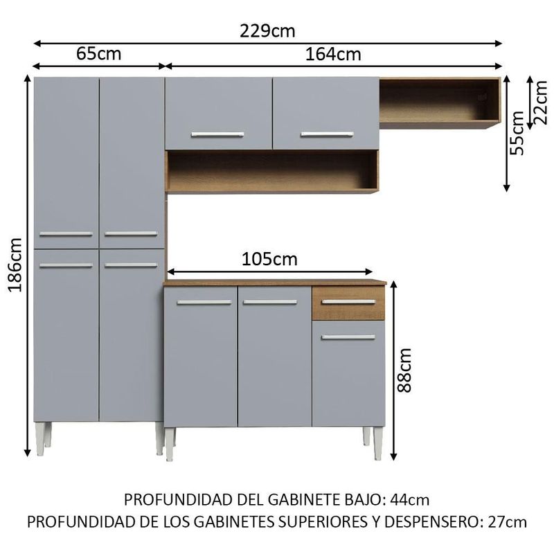 Madesa Gabinete de Cocina Integral Emilly Top Marrón Gris
