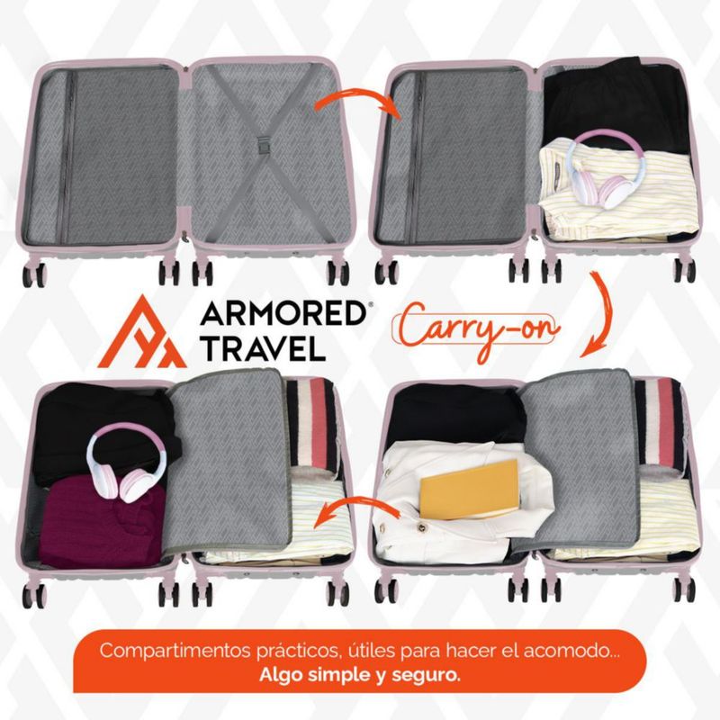 Maleta De Viaje Rígida Carry On De Mano Cabina Rosa 20 Pulgadas 10 Kg ABS doble refuerzo Con Candado Alta Seguridad Tsa Lock Armored Travel
