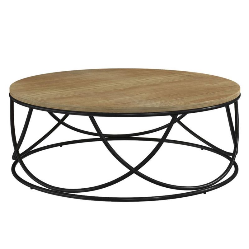 Mesa de Centro Circular con Madera MDF y Base de Metal Negra (Diámetro: 80cm)