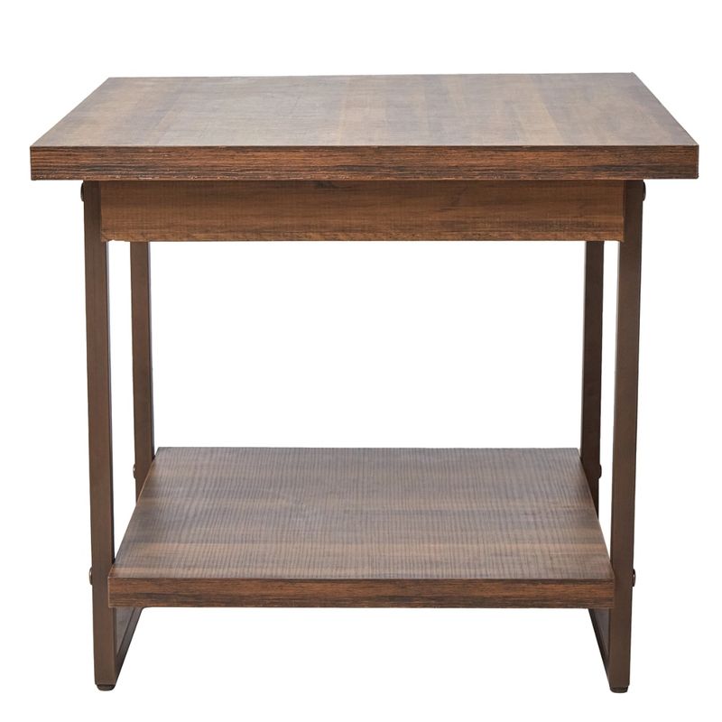 Mesa Lateral Auxiliar Color Nogal con 1 Entrepaño, Base de Metal y Tableros de Madera Industrial