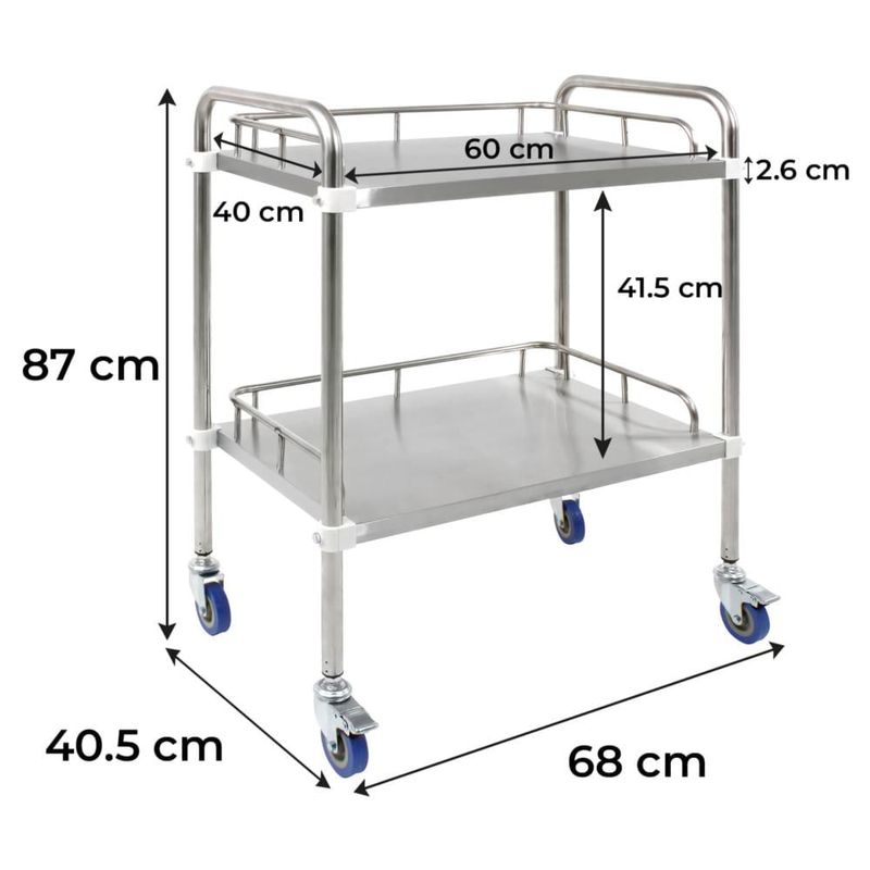 Belleza y Cuidado PersonalEstética y SpaMueblesMesa Multiusos Estetica Auxiliar Spa 2 Charolas Acero Inox
