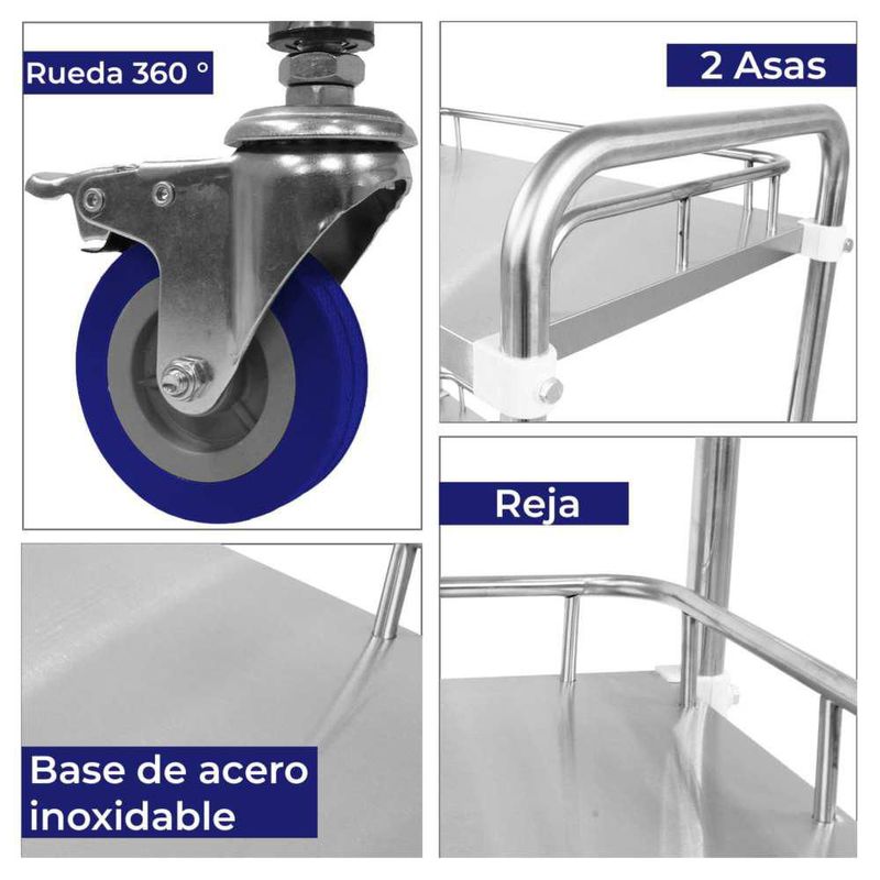 Mesa Multiusos Estetica Auxiliar Spa 2 Charolas Acero Inox