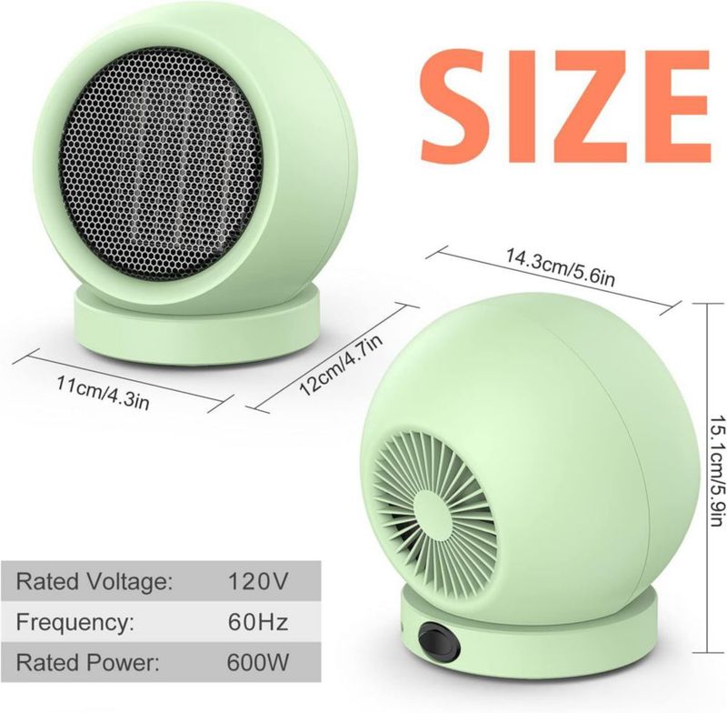 Mini Calentador Eléctrico Portátil Coolfor 500 W COLOR VERDE Para Interiores Escritorio Oficina Compacto Y Silencioso