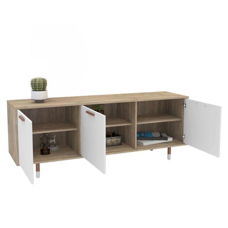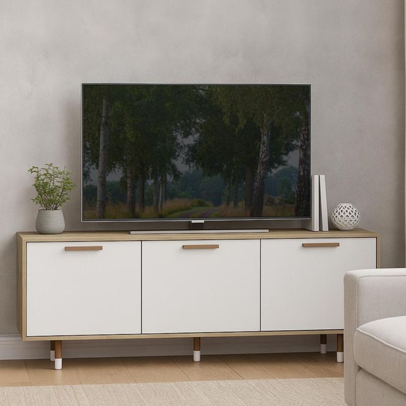 MOBI Mesa para TV de Madera Contemporáneo Petalita - 3 Puertas 3 Estantes Color Oak Blanco - Largo 165cm x Alto 62cm – Mueble para Televisión