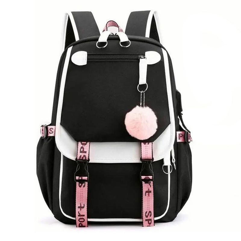 Mochila Kawaii Coreana Mujer dama Escolar Viaje Juvenil puertos usb