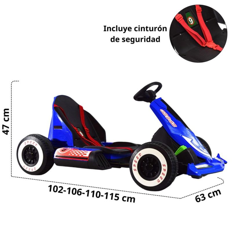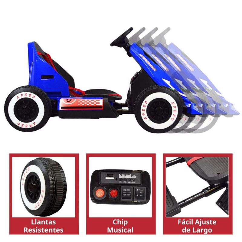Montable Electrico Go Kart para Niños Largo Ajustable Luz 12V - Azul F1