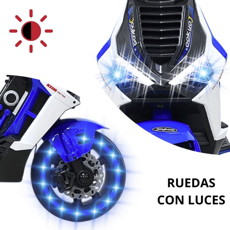 Motocicleta Eléctrica Montable para Niños Luces LED Bluetooth Llantas de Equilibrio Batería 12V Diseño Sport - Azul