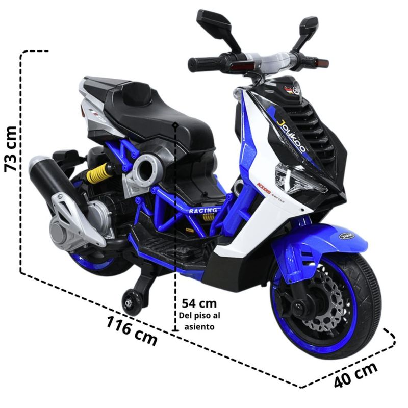 Bebés y juguetesJuguetesMontablesMotocicleta Eléctrica Montable para Niños Luces LED Bluetooth Llantas de Equilibrio Batería 12V Diseño Sport - Azul