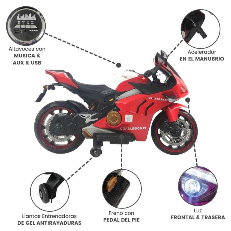 Bebés y juguetesJuguetesMontablesMotocicleta Montable Electrica Sonido Luz LED 12v Rojo Rojo