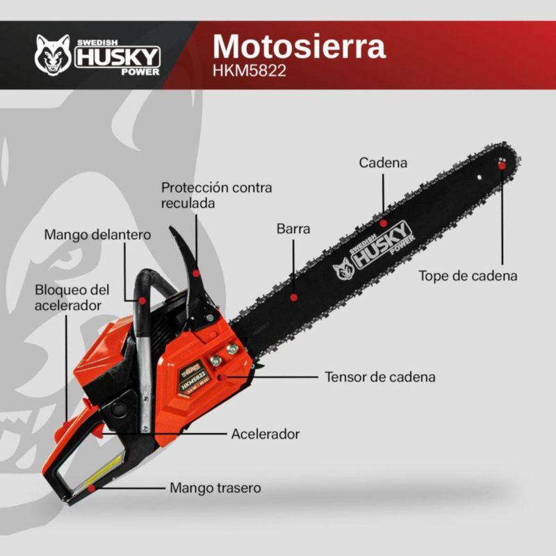 Motosierra Swedish Husky Power C/Barra De 22 Pulgadas 58 Cc 3.2 Hp - HKM5822