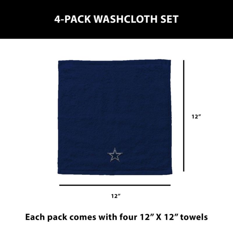 HogarBañoToallasPaquete de 4 Toallitas de Lavado Dallas Cowboys 30x30 cm