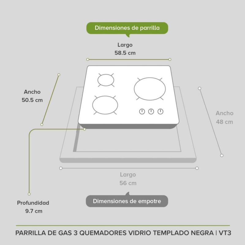 Línea blancaCocinaParrillasParrilla 3 Quemadores Gas LP y Natural Vidrio Templado Avera VT3