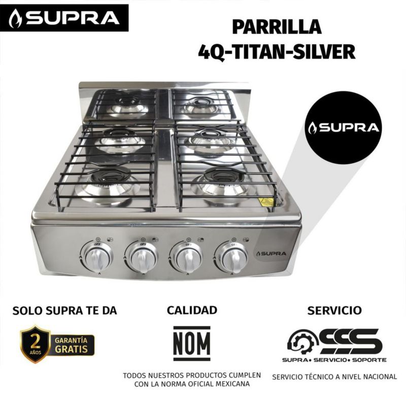 Línea blancaCocinaParrillasParrilla a gas LP 4Q-TITAN SILVER