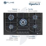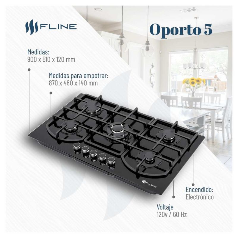 Línea blancaCocinaParrillasParrilla De Gas Empotrable 5 Quemadores Vidrio templado Oporto 5 FLINE
