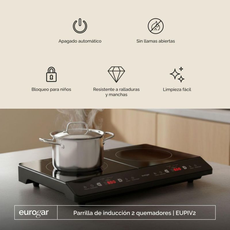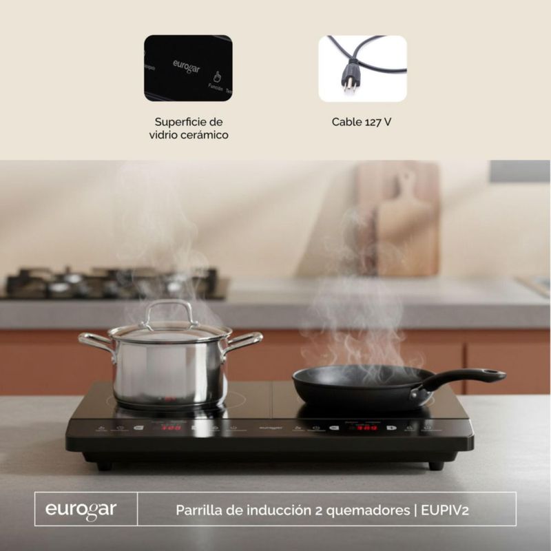 Parrilla de inducción 2 quemadores 127 V Sobre encimera EUROGAR EUPIV2