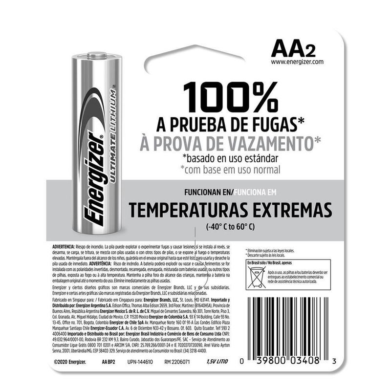 Pila energizer litio aa blister 2 unidades 1.5v