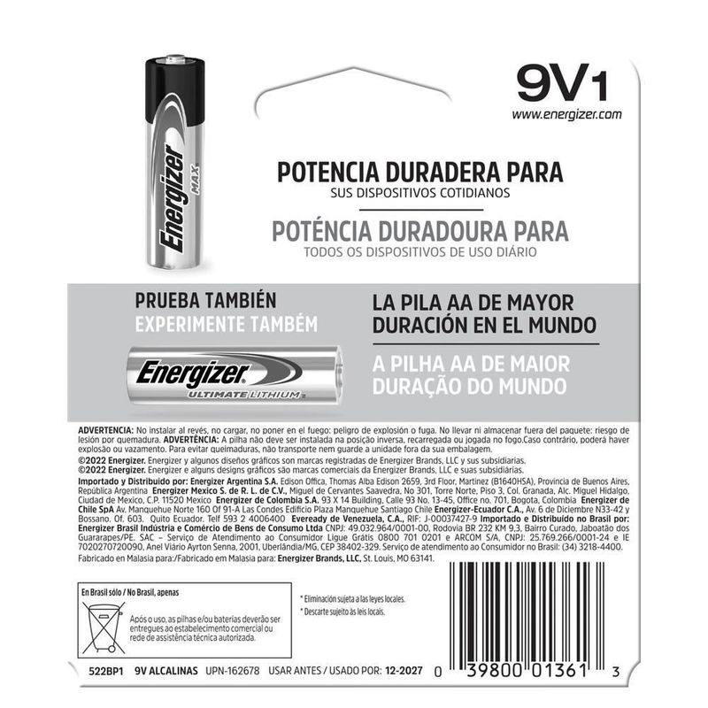 Pila energizer max alcalina 9v cuadrada 522bp-1