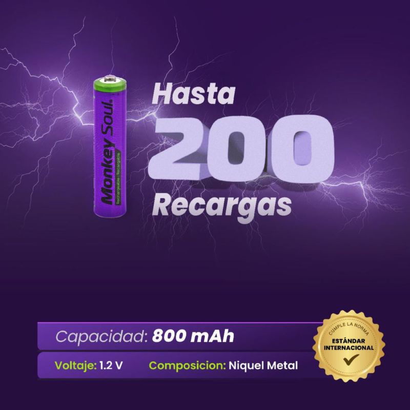 Pilas Baterías AAA Recargables Monkey Soul 6 piezas 800 mAh