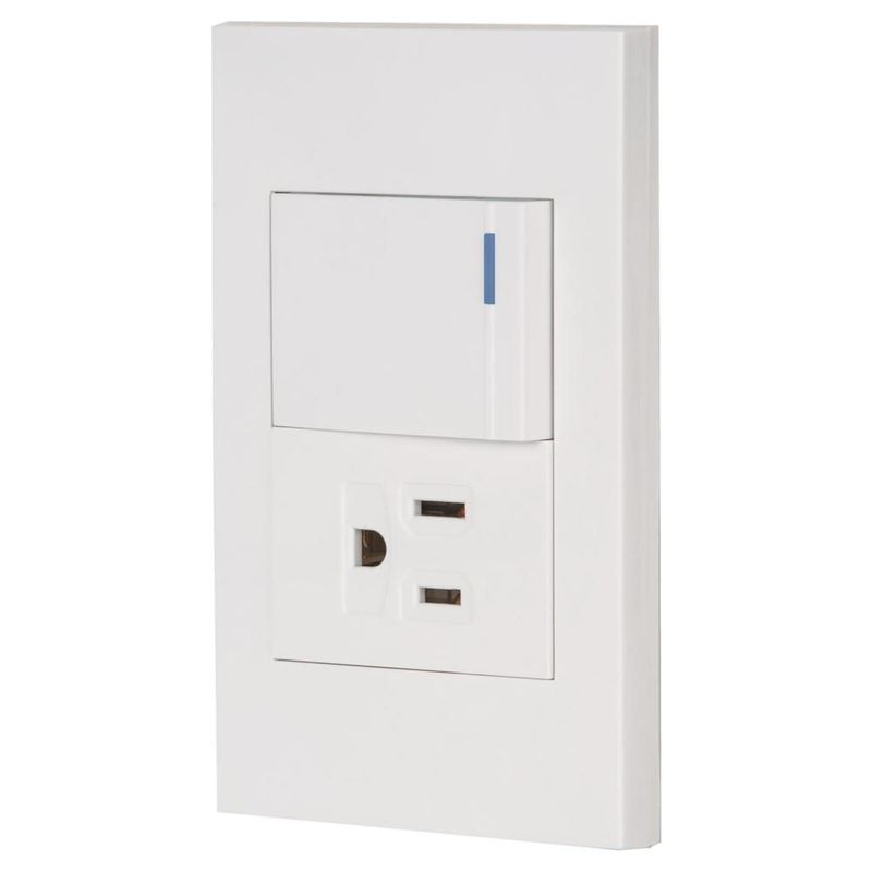 HerramientasMaterial EléctricoApagadores y ContactosPlaca armada 1 interruptor,1contacto,1.5mod,Española, blanco Volteck