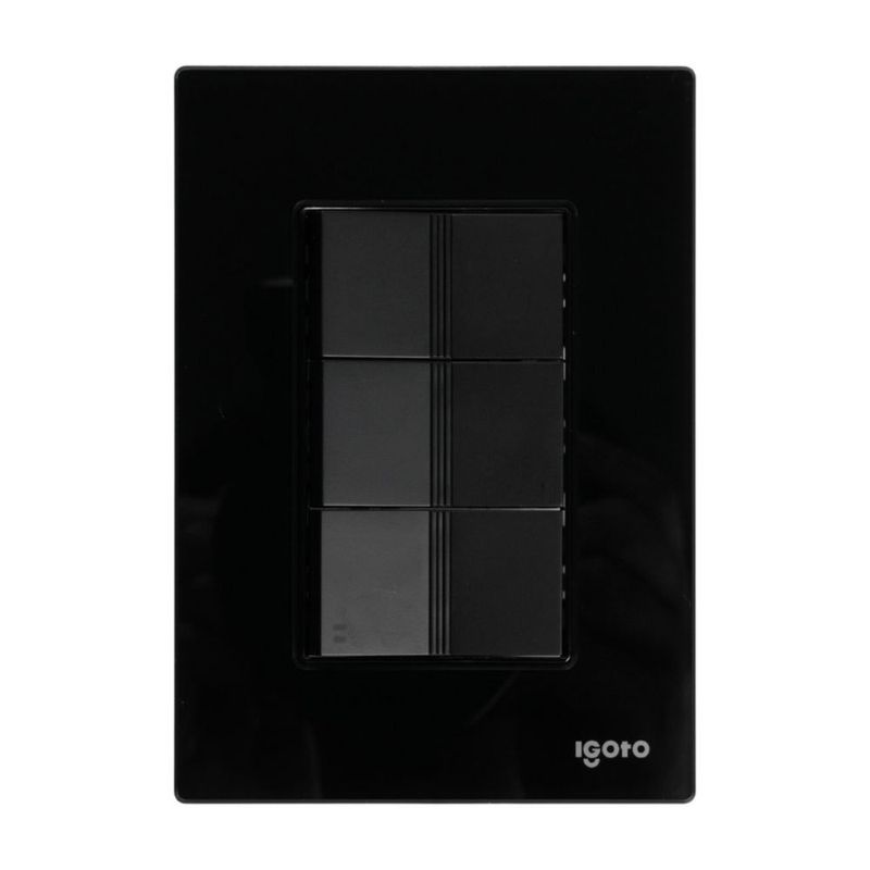 Placa armada cristal 2 apagadores sencillos 1 apagador escalera de 1 módulo negro