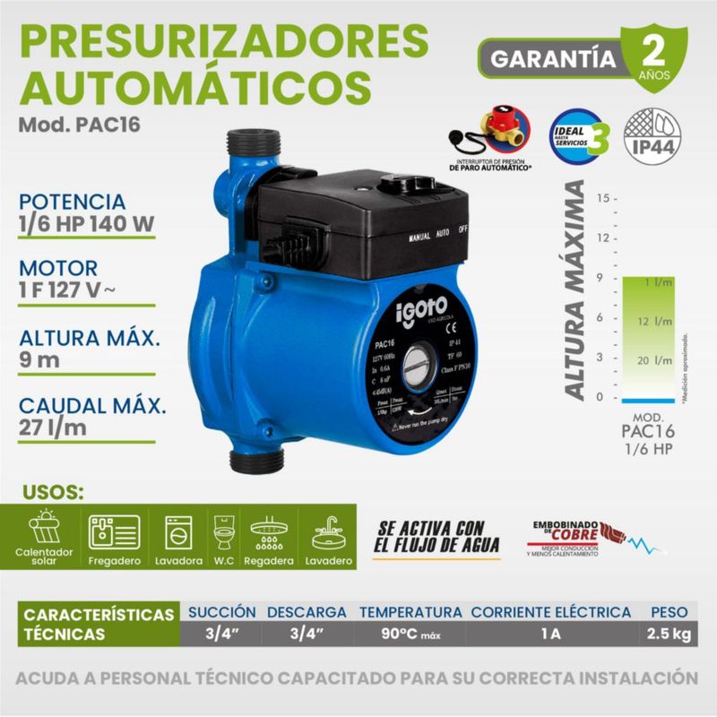 HerramientasPlomeríaBombas y PresurizadoresPresurizador Automático PAC16 IGOTO