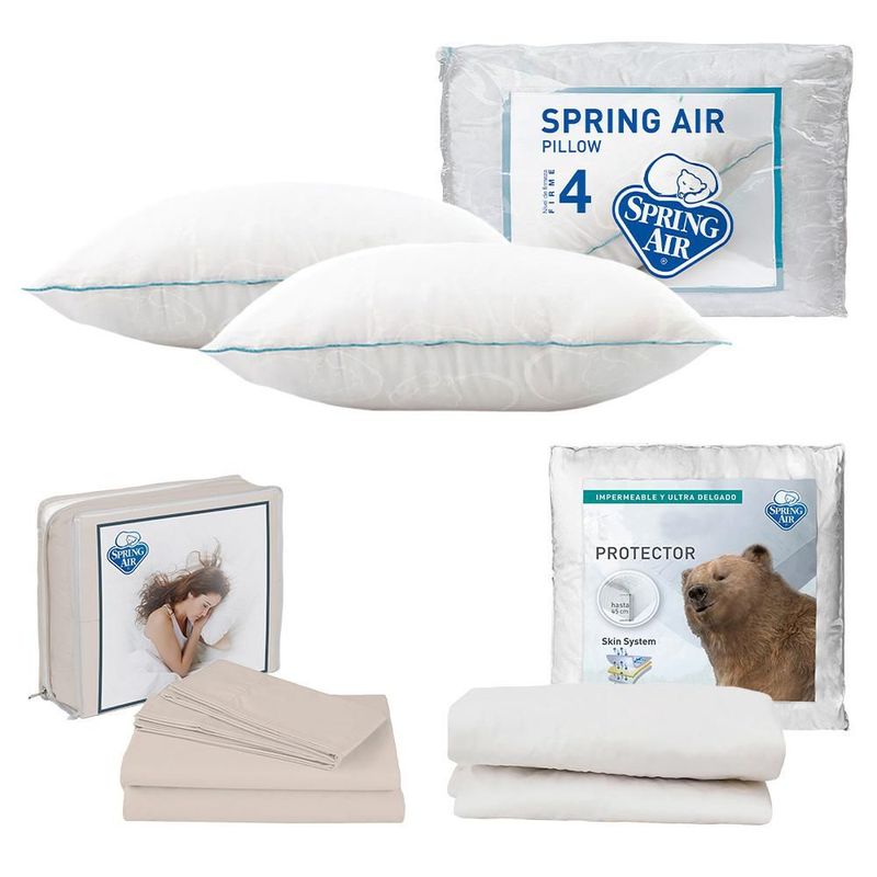 Protector de colchon King Size Spring Air Ultra + Sábanas Basic Crema + 2 Almohadas Osos TRY