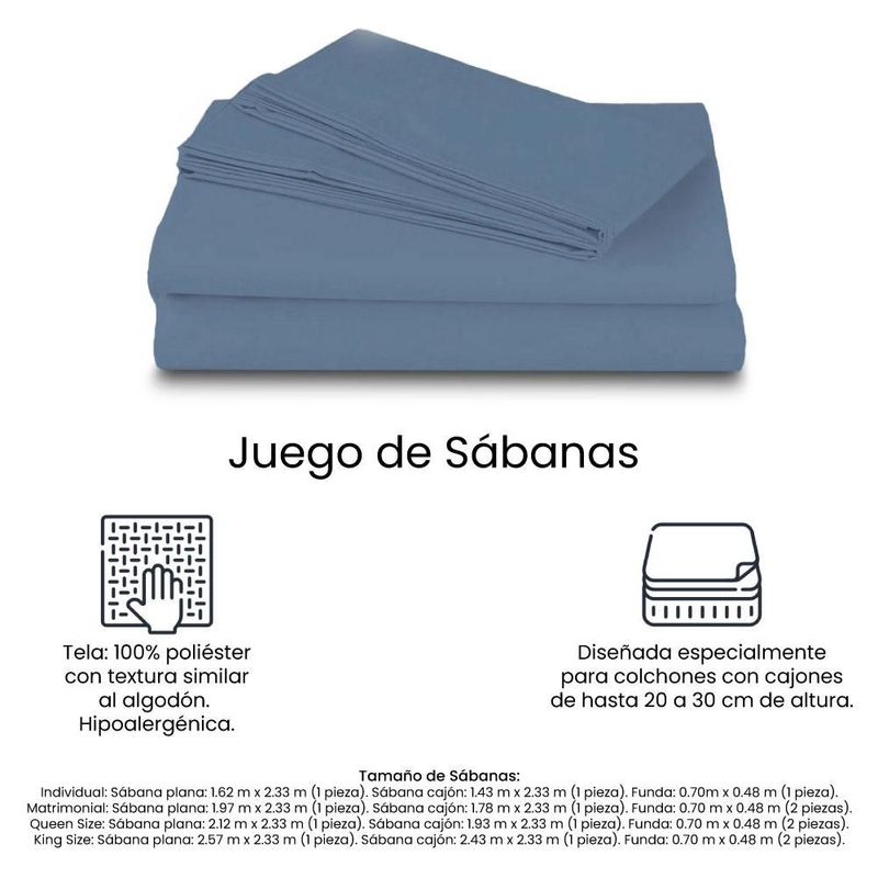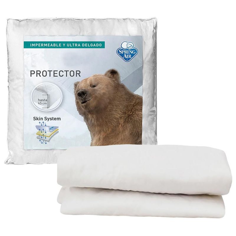 Protector de colchón Queen Size Spring Air Ultra + Sábanas Basic Azul Acero + 2 Almohadas Osos