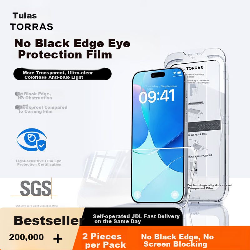 TelefoníaAccesorios AppleFundas y ProtectoresProtector de Pantalla Para iPhone 17 Pro TORRAS Cristal Templado Sin Borde Negro Transparente