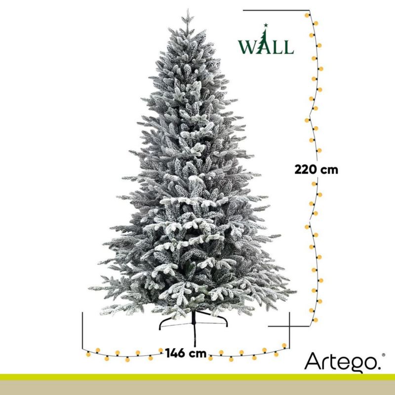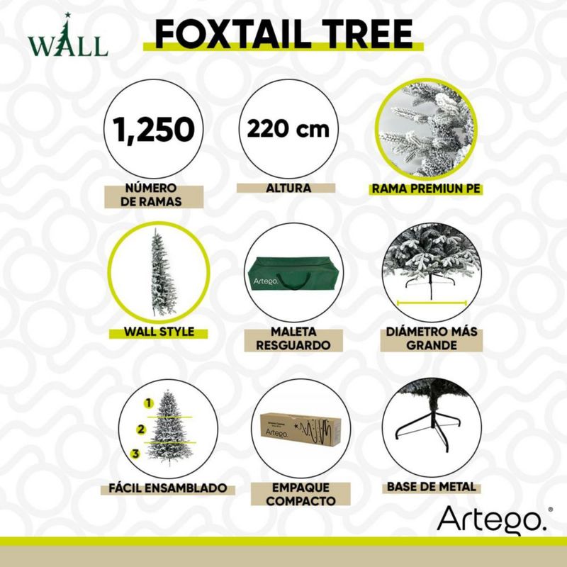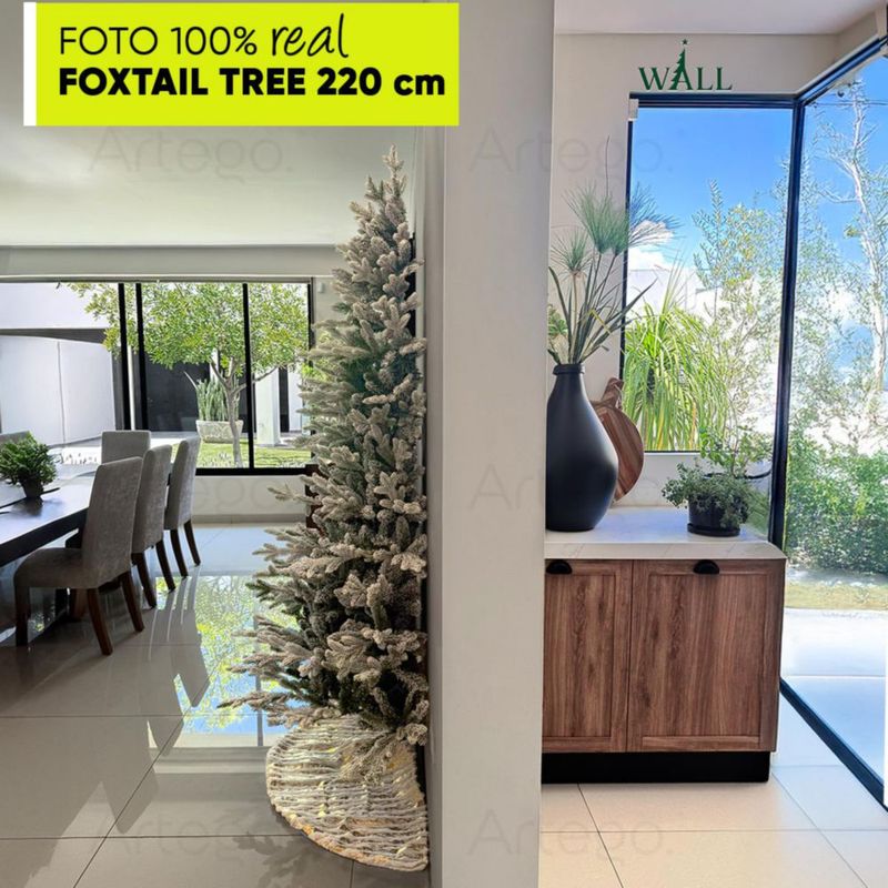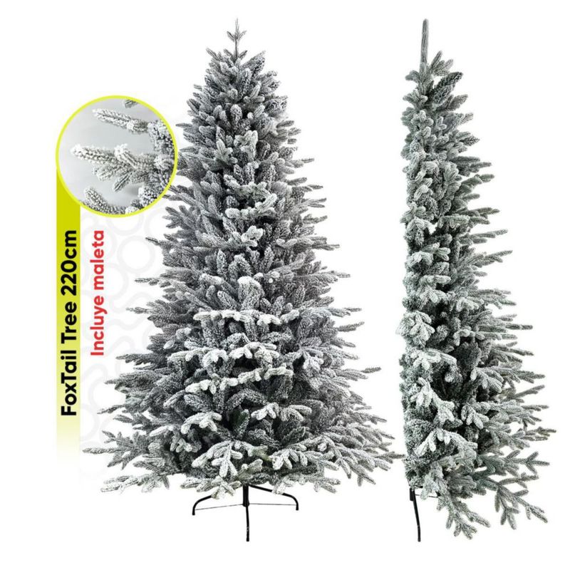 Árbol De Navidad A la mitad para Pared - Medio Árbol de 2.2m alto Nevado Ahorra Espacio Modelo Foxtail Premium con 1250 ramas PE/PVC Pino Navideño