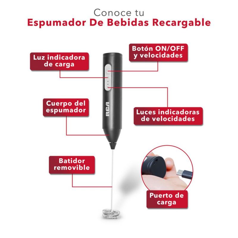 RCA, Espumador Bebidas Recargable, RC-60, Espumador de Bebidas, Recargable, Espumador, Bebidas, Espumador Recargable, Eléctrico, batir, mezclar, agita