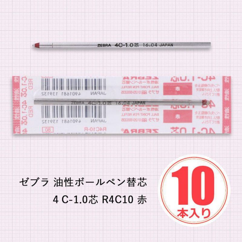 Recambio para bolígrafo Zebra B-R4C10-R Sharbo a base de aceite rojo 10 unidades