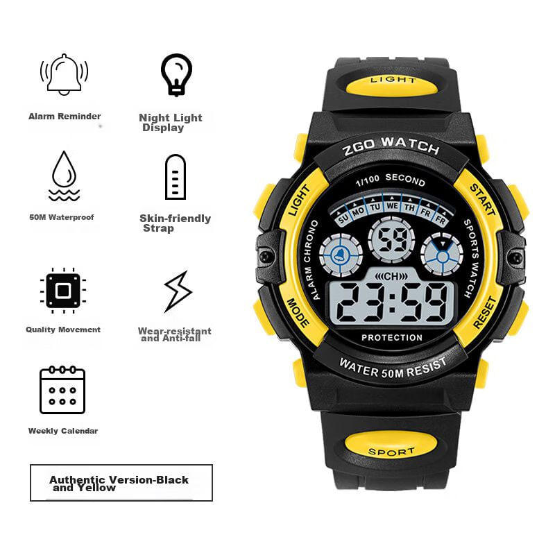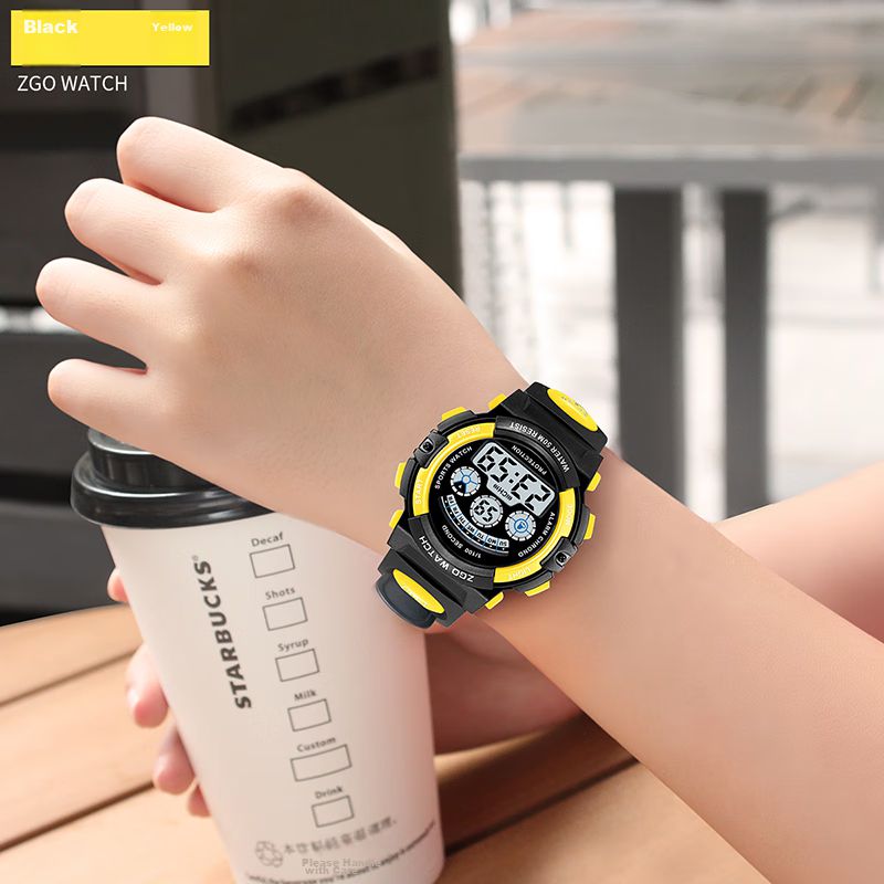 Reloj ZGO A305E electrónico impermeable negro y amarillo
