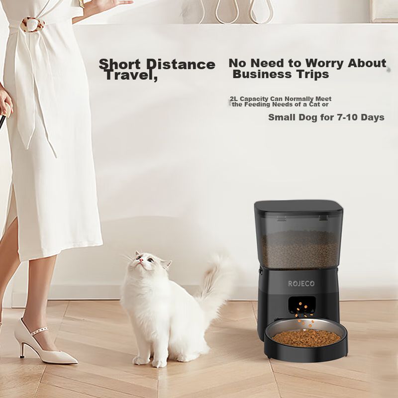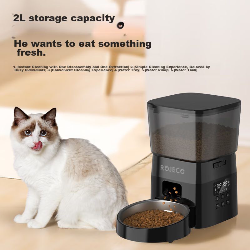 ROJECO Alimentador Inteligente para Gatos, Temporizador, 2L, Negro Obsidiana