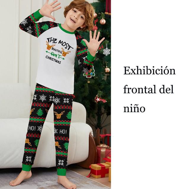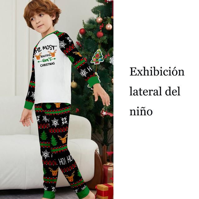 RopaRopa de DamaPijamasRopa para el hogar de padres e hijos europeos y americanos Fawn letra estampada pijama de manga larga dos juegos de padres e hijos de Navidad.HOGAWAY