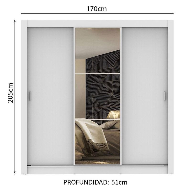 Ropero Closet Madesa Mônaco 3 Puertas 1 Espejo Color Blanco