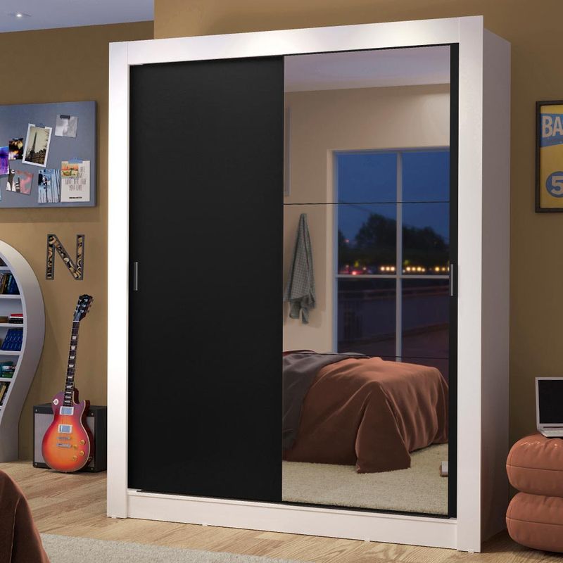 MueblesRecámaraClosets y ArmariosRopero Madesa Dallas 2 Puertas con Espejo 2 Cajones Blanco/Negro