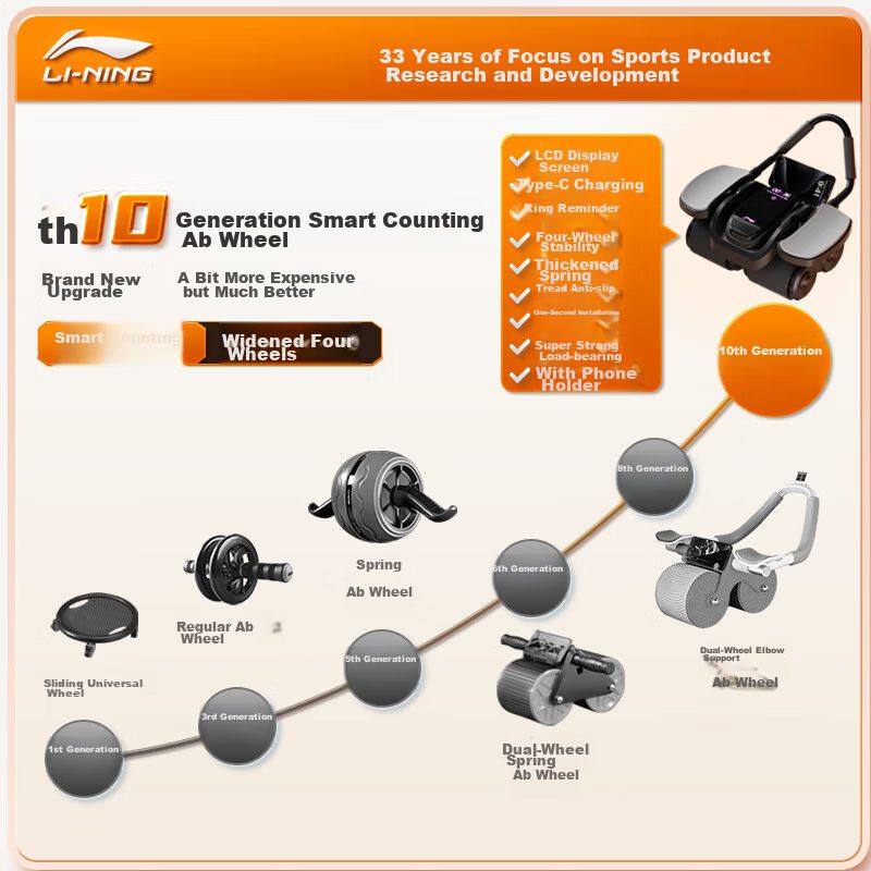Rodillo abdominal LI-NING cuatro ruedas con rebote automático Unisex