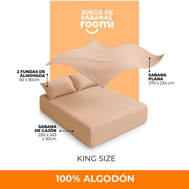 Sábanas King Size Roomi 100% Algodón Premium Color Beige