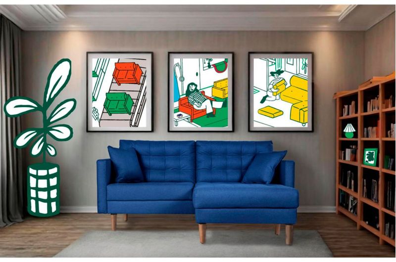 Sala Modular Makora Reversible De Lino Azul Modelo Jerome