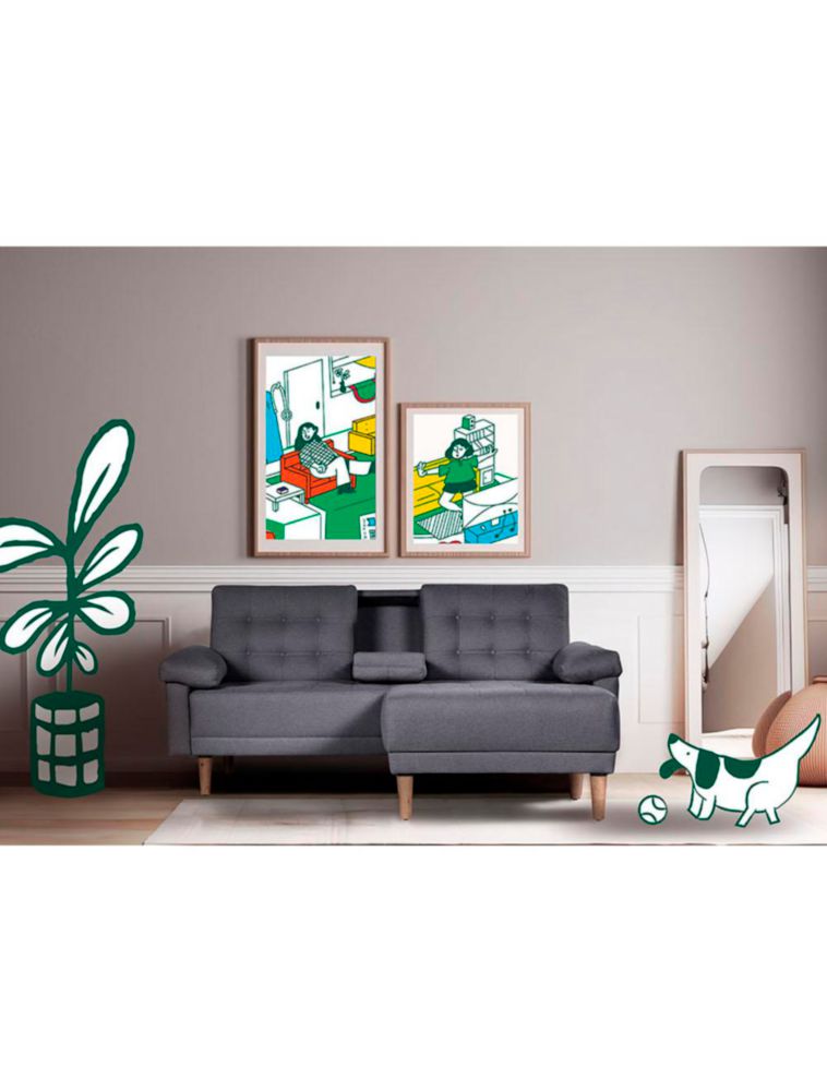 Sala Modular Makora Reversible De Lino Gris Oxford Modelo Praia