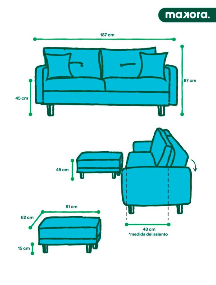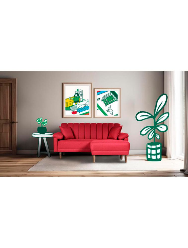 MueblesSalaSalasSala Modular Reversible Makora Calatrava Con Memory Foam, Color Rojo, Lino Respaldo Reclinable De 3 posiciones.